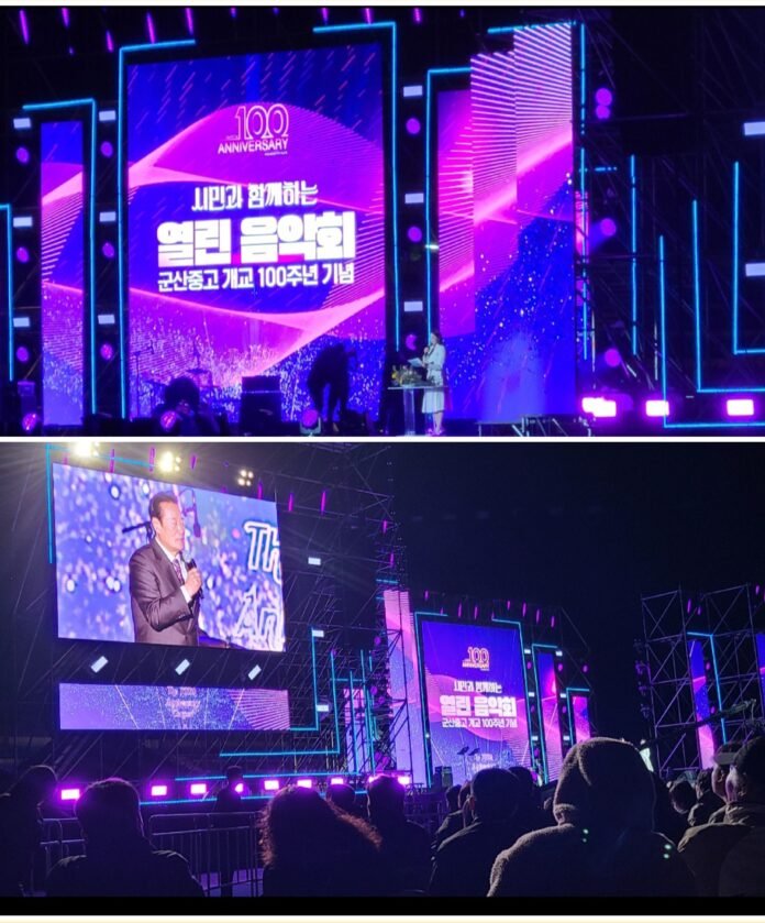 1923년 문을 열어 개교 100주년의 유구한 역사를 자랑하는 군산중고등학교 총동문회 및 100주년기념사업회가 공동주관 한 ‘시민과 함께하는 열린음악회’가 21일 오후 7시부터 월명종합경기장에서 이학교출신 동문 선후배들과 1만 여명의 시민들이 대거 참석한 가운데 성대하게 열렸다.